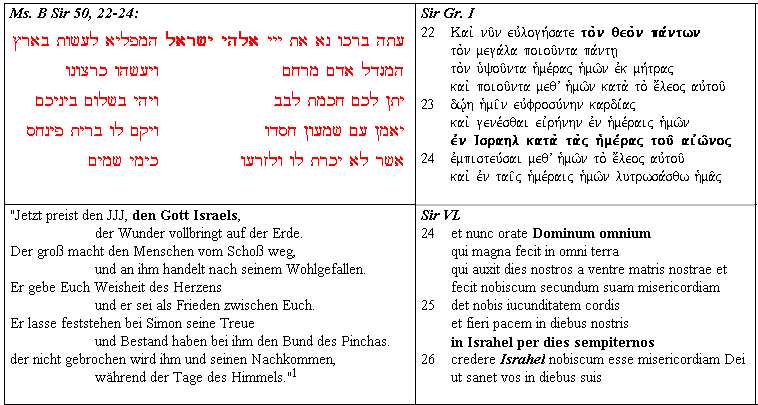 "Voor het onderzoek in Sirach is G. in een aanzienlijk deel de primaire bron. Dat geldt niet voor Sirach 44-50 waar MS B en deels M beschikbaar zijn. G. is te beschowen als primaire vertaling. In het exegetisch onderzoek van Ben Sira word te snel teruggegrepen op G. ten koste van H. De oorzaak ligt niet allen in de canonieke waardering van G., ook in de poging om de Urtext van H. vast te stellen met behulp van G. en S." #293.Er differenziert die verschiedenen Priestertraditionen, in die Sirach den Hohepriester Simon stellt, und die Bezüge, die diesen Höhepunkt des Väterlobes prägen. Von besonderem Interesse ist seine Diskussion der Darstellung des Simon bei Ben Sira im Unterschied zur späteren des Josephus.]